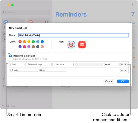 Mac Reminders Smart List - On a mac, tap on the make. In reminders, tap add list and tap make into smart list. Check the box next to make into smart list. To choose which smart lists appear in the reminders window, choose view > show smart list, then choose the smart lists. How do i change the criteria for an existing smart.
